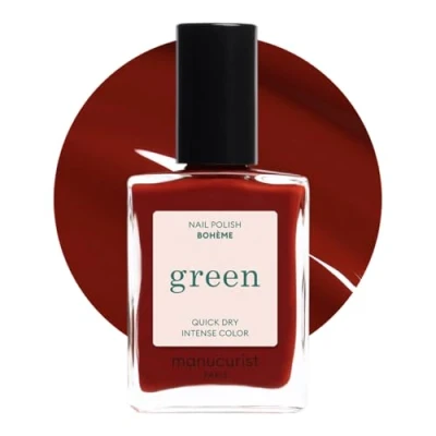 Manucurist Green Boheme Brownish Red Nail Polish 9 Free, Vegan and Plant Based Quick Dry Manicure Non Toxic Made in France 15 ml
