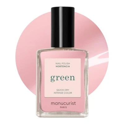 Manucurist GreenRange Nail Varnish : The new long-wear quick dry nail polish without a lamp! The Manucurist Green Nail Polish - range is a vegan, non-toxic, and eco-friendly collection made with up to 84% plant-based ingredients, offering a long-lasting, glossy finish while being free from harmful chemicals. Featuring professional-quality brushes for effortless application, it delivers extreme shine and a 12-free formula, ensuring a safer manicure. Plus, it air-dries naturally and removes easily with a gentle solvent. Hortencia is a sheer pale pink nail polish from the Green range. A sheer and delicate pink. A natural hue that's made for you. Hortencia offers sheer coverage, a non-iridescent finish, and a beginner-friendly application. The Manucurist Green Nail Polish - range is a vegan, non-toxic, and eco-friendly collection made with up to 84% plant-based ingredients (Potato, corn, manioc or cotton), offering a long-lasting, glossy finish while being free from harmful chemicals. Fast drying nail polish without the need of a lamp. How to Use? Like a traditional fingernail polish! Thanks to its professional-quality brushes, application is smooth and effortless. Apply it over the Green Base Coat, seal it with the Green Top Coat, and for gentle removal, use the Dissolving Water Green— Long lasting Nail Polish, no lamp needed! Manucurist, made in France, is revolutionizing the manicure experience by offering a plant-based, vegan, cruelty-free, and eco-friendly range of nail products such as top coat nail polish or nail care, free from harmful chemicals, designed to suit every style while ensuring a healthier, more sustainable manicure. Manucurist nail polishes have been TPO-free since 2019 !