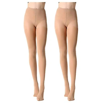 MANZI 2 Pairs 70 Denier Women's Tights Stretch Run Resistant Opaque Control Top Tights(2 Suntan, XL)