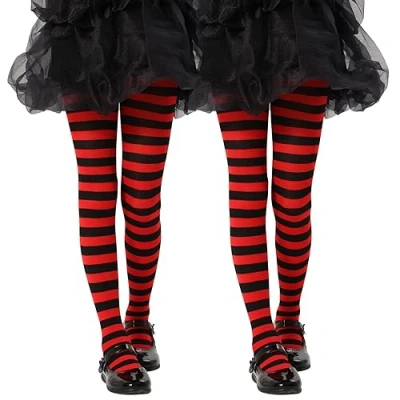 MANZI Children's Striped Tights Opaque Pattern Casual Pantyhose For 2 10 Years,Black/Red,4 6 Years