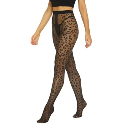 MANZI Women Patterned Tights Silky Sheer Leopard Black 20D