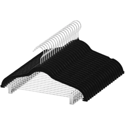 MANZOO 20Pack Black Velvet Pants Hangers with Clips, Non Slip, Contoured, Textured Plastic, 16.85 x 7.95 inches