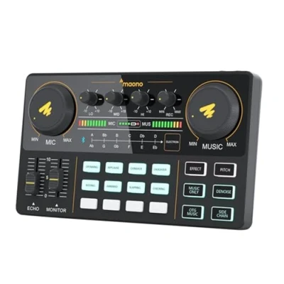 ✅ [All-in-One Podcasting Console for Beginners]: The MAONOCASTER AU-AM200 is a compact, easy-to-use audio mixer designed for new podcasters, streamers, and musicians. Get professional sound quality without the complexity of traditional studio setups. ✅ [4-Channel Mixing with Plug-and-Play Setup]: Mix audio from microphones, smartphones, and PCs with ease. Simple plug-and-play connections let you start recording or streaming in minutes – no extra software needed. ✅ [Built-In Vocal FX & Sound Pads]: Add personality to your content with voice-changing effects and built-in sound pads. Experiment with live effects in real time to engage your audience and enhance your stream. ✅ [Portable with Long-Lasting Battery]: Take your studio anywhere with a built-in rechargeable battery. Ideal for on-the-go recording, outdoor streaming, or sessions without access to power outlets. ✅ [Dual Mic Inputs & Pro Audio Quality]: Supports both condenser and dynamic microphones via dual 3.5mm inputs. Includes high-quality preamps and noise reduction for clear, professional sound every time.