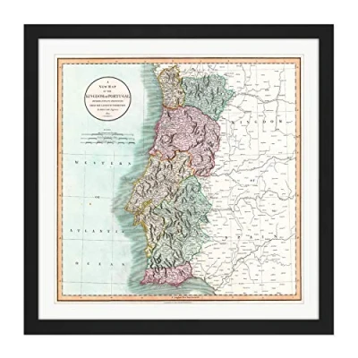 Map Antique 1801 Cary Portugal Old Historic Replica Square Wooden Framed Wall Art Print Picture 16X16 Inch