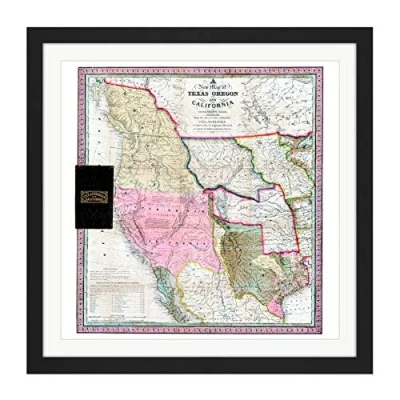 Map Antique 1846 Burroughs Texas Oregon California Replica Square Wooden Framed Wall Art Print Picture 16X16 Inch