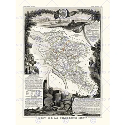Map Antique Illustrated France Levasseur Charente Inferior Art Print HP1442