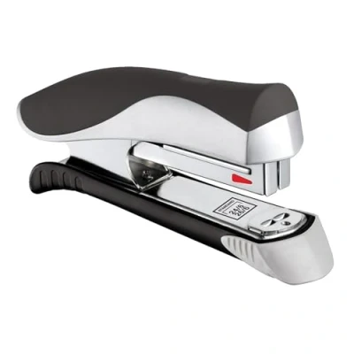 Ergologic Schreibtisch-Heftgerät mit Halbstabmagazin Kann zwei Heftklammerstäbe aufnehmen Heftet bis zu 25 Blatt An den Druckzonen weich und gepolstert In verschiedenen Farben