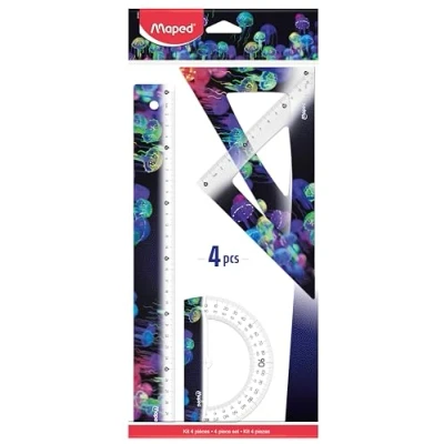 Maped 4 Piece Deepsea Paradise Tracing Set Ruler 30 cm + 60 / 21 Square 45 21cm 180 Protractor Base 12 Ergonomic and Lightweight Instruments