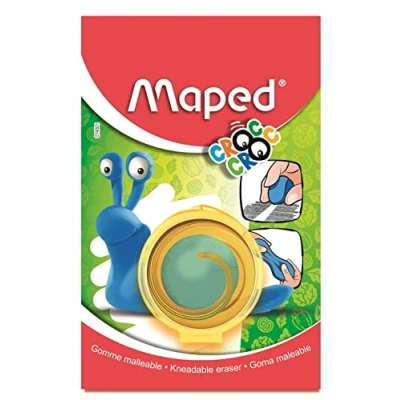 The first infinitely adaptable eraser: with its soft material, close to modelling clay, this Croc Croc eraser is not afraid of the handling of children. It kneads, and separates into small pieces without ever deteriorating, the pieces stick again and again Shelter in its shell: Once used, stretched and kneaded, the Croc Croc rubber gains a well-deserved rest in its airtight protective box, inspired by the shell of a small snail. Well protected in its shell, the eraser does not get dirty Strong erasing power: fun thanks to its translucent shell, the Croc Croc Eraser is also effective. With its erasing power of 77%, it erases all small errors without difficulty. RESPONSIBLE PACKAGING: Maped Croc Croc Eraser is in 100% recyclable cardboard packaging, to respect our beautiful planet. MAPED : Since its inception in 1947, Maped (Manufacture of Precision and Drawing Items) has been supporting its development on its industrial know-how, innovation culture and responsiveness to offer its users more efficient and sustainable solutions.