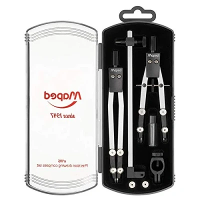 PRECISION SIGNS The compass since 1947 No. 415 is ideal for technical and precise drawings. 4 tension screws and the tilt of the branches 90° inwards allow for quick, easy and optimal adjustment. The serrated head provides a good grip. DURABLE TOOL This 100% metal compass provides performance and toughness, ideal for students and professionals looking for a high quality compass. The plastic case with snap closure features a velvet base for easy transport. Simple design STURDY This railing is made of high quality metal. The refillable and divisible graphite lead with a pen/pencil distinguishes perfect circles. Its metal tip has optimal anchoring on all surfaces. Maximum distance diameter: 30 cm. ACCESSORY BOX Allows you to take your compass and its utensils with you wherever you go. The kit contains: 1 x 130mm metal concle, 1 x 105mm precision balus compass, 1 x 140mm external extension cable, 1 x spare lead case (2mm) and 1 x pen adapter and 1 x spare nut. Maped Since its founding in 1947, precision and drawing manufactory based on industrial know-how, innovation culture and responsiveness to offer users increasingly efficient and sustainable solutions. Family owned business on 6 continents and in more than 125 countries, Maped is now the world leader in school and office supplies.