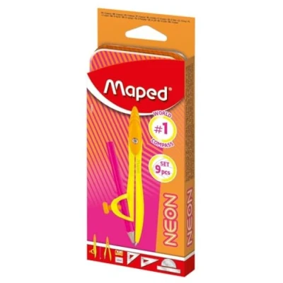 Complete geometry set: This geometry kit contains everything you need to succeed in your plots and your geometry exercises: 2 compasses (1 ring and 1 lead), a 15 cm ruler, a 180° protractor, 2 brackets (60° and 45°), an eraser, a sharpener and a pencil. FLASHY AND MODERN DESIGN: With bright and flashy colors, this geometry set will appeal to children and add a touch of style to their pencil case. Perfect for bringing some fun to geometry while remaining practical, precise and complete. PRECISION COMPASS: The set includes 2 compasses: a ring compass and a lead compass, offering maximum versatility for all types of geometric patterns. Both compasses ensure accuracy and ease of use. ESSENTIAL ACCESSORIES: In addition to the compass, this set includes a 15 cm ruler, a 180° protractor and two brackets (45° and 60°), an eraser and a sharpener, ideal for making all the necessary plots in math class or for homework. CHANGING THE WORLD WITH HER HANDS: Maped has been innovating for over 75 years for children around the world to cultivate their imaginations, develop their knowledge, learn and create with their hands. Innovative tools and sustainable school supplies specifically designed for them… Day after day, Maped empowers children to change the world with their hands!