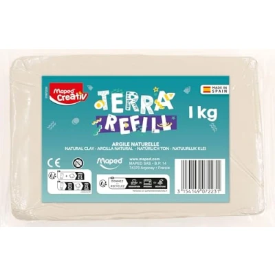 CONTINUE THE CREATIVE ADVENTURE: With this 1kg clay refill, children can extend their Terra Pottery experience and continue to make beautiful pottery. Perfect for stimulating their imaginations and boundless creativity. SELF-HARENING CLAY: Clay dries naturally in the open air without the need for firing. A simple and practical solution for solid and durable creations, suitable for young artists from 8 years old. EASY TO HANDLE TEXTURE: Soft and malleable, this clay is ideal for shaping pots, vases and decorative objects. It helps children develop fine motor skills while having fun. GENEROUS FORMAT: The 1 kg clay bread offers a large amount of material to make several creations. A convenient and economical refill to extend creative moments at home. TERRA POTTERY COMPATIBLE - Designed to fit perfectly with Maped Creativ's Terra Pottery Kit, this refill is essential to continue this captivating and educational manual activity., Manufacturer: Maped