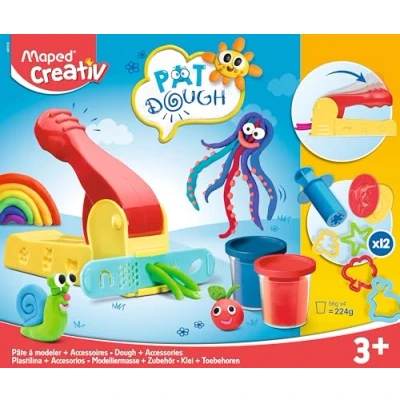 Maped CREATIV PAT'DOUGH Modelling Clay with Large Selection of Kneading Accessories Including a Press 4 x 56 g