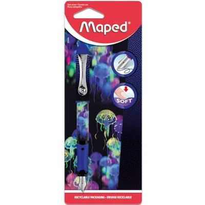 Premium writing quality: The Maped fountain pen has a steel nib with an iridium tip. Medium size, it guarantees excellent gliding on paper. This is the perfect ink pen for ultra smooth and regular writing! Ergonomic fountain pen with a soft grip for the pleasure of writing for schoolchildren, who will not have any pain in their hands after hours of writing. REFILLABLE: The Maped fountain pen consists of a screwable compartment where the ink cartridge is inserted, which you just need to click into the nib on the nib side. Compatible with standard erasable cartridges with a rewriter eraser. An essential school tool from primary school! DECORATED AND TRENDY PEN: The fountain pen "Deepsea Paradise" is a sensation among teenagers. It is a perfect pen for writing homework. DEEPSEA PARADISE COLLECTION: Dive into a hypnotic underwater world with dazzling patterns. Affirm your style, write your story and imagine your paradise! Let yourself be seduced by this mesmerizing atmosphere and let your imagination run wild in the depths of "Deepsea Paradise". CHANGING THE WORLD WITH HER HANDS: Maped has been innovating for over 75 years for children around the world to cultivate their imaginations, develop their knowledge, learn and create with their hands. Innovative tools and sustainable school supplies specifically designed for them… Day after day, Maped empowers children to change the world with their hands!