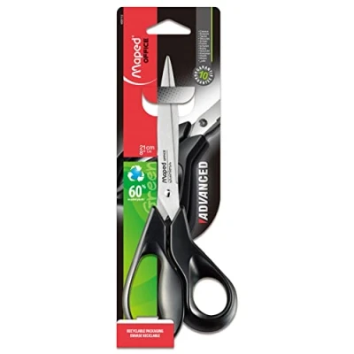 Advanced Green Recycled Scissors 21cm, Asymmetrical 3D Ergonomic handles Handles made from 70% recycled plastic Eco friendly packaging Comfort and precision for all grip types and hand sizes