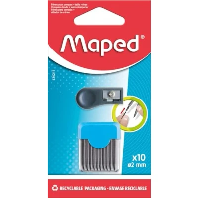 COMPASS COMPATIBILITY: This compass refill is compatible with all Maped compass ranges, from Kid'z and Stop & Safe collections to Origin compasses through Stop System. Leads also suitable for all traditional school compasses in general. EASY TRANSPORTATION: The replacement leads come in a hard case that makes it easy to transport the product. Ideal for putting in a pencil case thanks to this plastic protector. Gone are the days when the leads wander and break in the pencil case! OPTIMAL QUANTITY: The refill of 10 leads is suitable for a school year. TECHNICAL FEATURES: 10 HB leads with a diameter of 2 mm. Case size: 6.5 x 12 x 0.8 cm. ##NewLine##1 mining CHANGING THE WORLD WITH HER HANDS: Maped has been innovating for over 75 years for children around the world to cultivate their imaginations, develop their knowledge, learn and create with their hands. Innovative tools and sustainable school supplies specifically designed for them… Day after day, Maped empowers children to change the world with their hands!