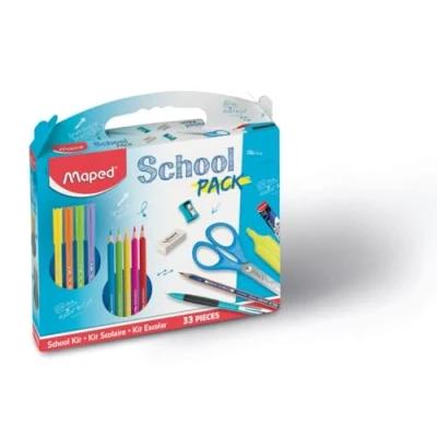 THE COMPLETE SCHOOL KIT: With the School Pack Maped, kids will have everything they need at school to write, draw, color, highlight, and more! This kit, consisting of a selection of Maped school supplies, contains all the materials needed to fill a school kit. EVERYTHING TO DRAW AND COLOR: With the 12 strong coloured pencils, 12 Ocean felt-tip pens, and 3 navy pencils with eraser, children will have a wide range of choices and colours for colouring and drawing. The classic highlighter will even allow them to put neon on their creations. Kids will love it! WRITING, CUT, ERASE … AND START AGAIN: To accompany children during their learning, the School Pack also contains school supplies to learn to write, erase, cut and start over at will. Products suitable for their little hands. Package contents: 12 strong coloured pencils, 12 Oean markers, 3 navy graphite pencils with eraser tip, 1 mechanical pencil, 1 lead case, 1 yellow highlighter, 1 Technic white mini eraser, 1 Vivo pencil sharpener, 1 pair of Pulse scissors. MAPED : Since its creation in 1947, Maped (Manufacture d'Articles de Precision Et de Dessin) has supported its development on its industrial know-how, its culture of innovation and its responsiveness to offer its users ever more efficient and sustainable solutions.