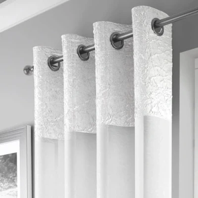 Maple Textiles A Pair of White Eyelet Heading Voile Crushed Metallic Satin Curtain Panel Ring Top Available in 3 sizes (2, White, 54"(137cm) Drop)