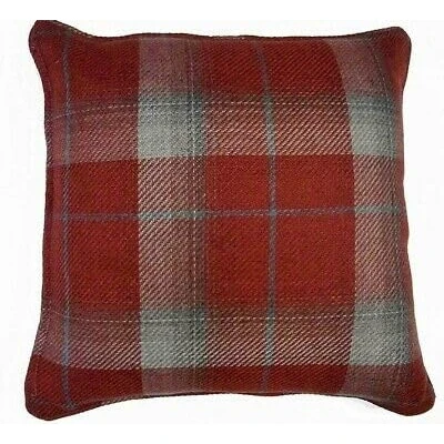 Maple Textiles Faux Brushed Wool Country Checked Cushion Cover 18" x (45cm 45cm) Pillow Case for Sofa Chair Living Room Bedroom Lounge (4, Red)