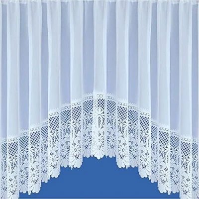 Maple Textiles (Jardiniere 150" Wide x 36" Drop) Jardiniere Net Curtain Plain White with a Lace Scalloped Bottom Base Available in 3 Width and 5 Drops