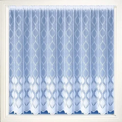 White Net Curtain Modern Geometric Design Net Curtain Sold By The Metre In the drop down quantity box choose the amount of net you require The basket will combine orders of the same drop size so either pay for them separately or order the total amount of metres you need and let us k your cutting instructions. Quantity 1 = 1 Metre Width, Quantity 2 = 2 Metre Width (Comes as one piece) Quantity 3 = 3 Metres Width (Comes as one piece) etc. In the drop-down quantity box choose the metreage you require for your net, for example, for 2 metres of net you would select 2 in the quantity box. Orders will all be sent as one piece unless otherwise requested. Customers should order at least double the width of their window for gathering. Slotted ready for a wire or net rod Net Curtains Ideal for reducing glare and heat from the sunlight through your windows Item weight: 100.0 grams