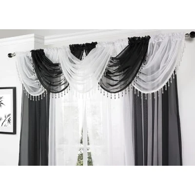 Maple Textiles Voile Curtain Swag with Crystal Beaded Trim (Black Swag)