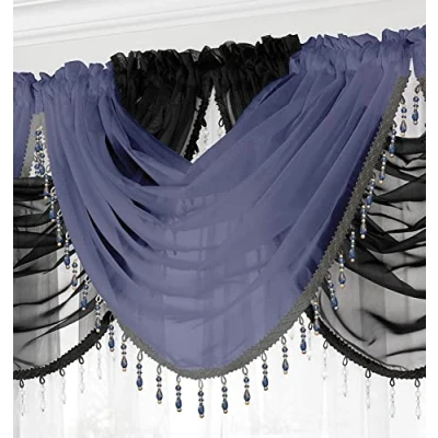 Maple Textiles Voile Curtain Swag with Crystal Beaded Trim (Navy Blue)