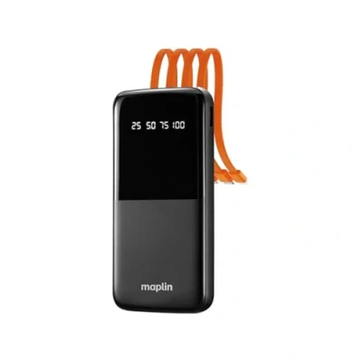 ✅【OVER 45 YEARS 】Maplin, a trusted electronics specialist since 1975. 🔌 [NO CABLES] Built in charging cables (Lightning, USB-C and Micro USB) ensures you never have to carry cables with you again! Cables provided will charge all devices. 🔌 [ADDITIONAL PORTS] Prefer to use your own cable? You can also charge devices using the 2x USB-A output ports placed at the top of the powerbank. 🔋 [STAY CHARGED] You’ll be able to charge your iPhone 14 2x times, Samsung S22 1.8x times and your iPad Mini 6 1.2x times when your power bank is fully charged. 📱 📷 [5 DEVICES] Charge up to 5 devices at the same time! ✅ [UNIVERSAL COMPATIBILITY] Compatible with all brands including Apple, Samsung, Google, Microsoft & more. Also all devices including phones, tablets, Bluetooth headsets, cameras, smart watches and more. ⚡ [LED DISPLAY] Power Bank includes LED display that clearly displays the battery power remaining to help prevent you from accidentally running out. ⚡ [FULL POWER] Charge your powerbank back to full power with the integrated USB-A cable or the USB-C/Micro-USB ports placed at the top of the powerbank. 🚨 [SAFETY] Designed with a safety system which integrates protection against over temperature, overcurrent, overvoltage, over power, short circuit, over discharge, overcharge, electromagnetic interference, and combustion. The comprehensive protection keeps you and your devices safe. ⚡ [EXTENDED POWER] Our power bank is engineered to keep your device running smoothly. While some high-powered devices may not see a boost in battery percentage during intense use, our power bank is designed to effectively extend your overall battery life, keeping you powered up for longer. When your device is in lighter use or standby, it will recharge the battery.