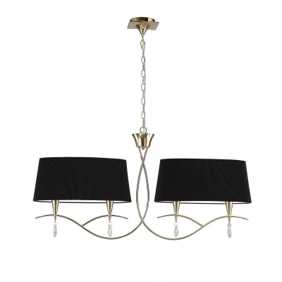 Mara Linear Pendant 2 Arm 4 Light E14, French Gold Black Shades