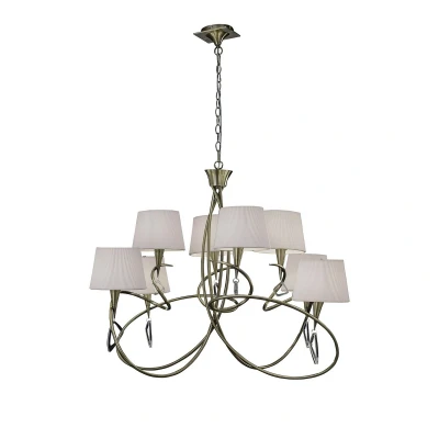 Mara Pendant 2 Tier 8 Light E14, Antique Brass Ivory White Shades