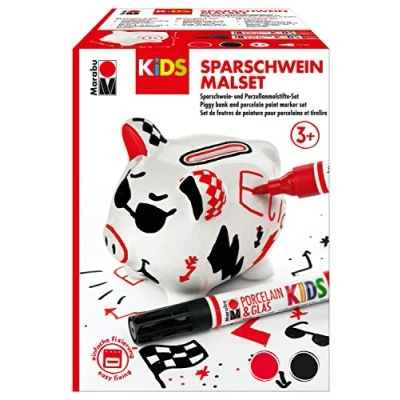 Creative set for children from 3 years to create an individual money box Contents: 1 x piggy bank, 2 x porcelain and glass painter 1-3 mm in cherry red and black Pens ideal for small children's hands thanks to the thick pen model and universal tip for easy porcelain and stained glass Water-based colours A great gift idea for boys and girls, Manufacturer: Marabu