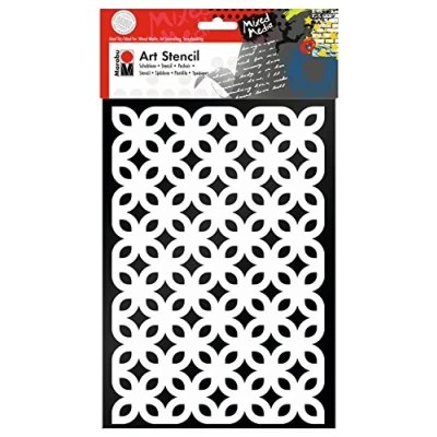 Stencil made of durable, laser cut polyester Particularly robust and durable Easy to clean with water, reusable, mirrorable Suitable for spraying, rolling, dabbing and filling of all Marabu acrylic and textile paints PVC-