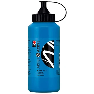 Marabu 12200075956 Artist Acrylic, Primary Cyan, 500 ml, Fine Acrylic Paint in Quality, Water Based, Pastose Consistency, Highly Pigmented, Very Good Brilliance and Coverage