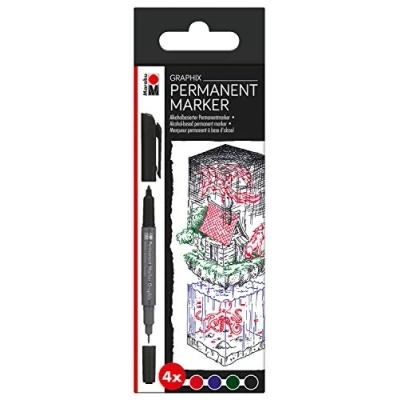 BRAND – Marabu have been producing high-quality specialist products for over 155 years. The company produces colours of unique quality through their experience, expertise and the eye for detail, which can be used for both home use and industrial purposes. Customers all over the world see Marabu colours as quality ‘Made in Germany’. DUAL TIPPED – These markers are equipped with a twin tip and clip – 1-2mm fibre tip and an extra fine 0.5mm metal-clad plastic tip, allowing the artist to draw and write in two line thicknesses. IDEAL – These Graphix Permanent Markers are great for adding permanent designs to a variety of surface materials. The ingenious permanent marker is a pro in all areas, adhering to many absorbent and smooth surfaces. QUALITY – The high-quality, alcohol-based ink is low-odour, water-resistant and smudge proof once dry. Depending on the colour, the low-odour ink is transparent to opaque and cannot be mixed. HANDY – The lid features a practical clip that enables the marker to be quickly and flexibly clipped onto a sketchpad or shirt pocket.