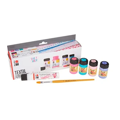 VERSATILE - Fabric painting and printing colour for all light-coloured fabrics WATER-BASED - Fabric paint can achieve charming effects WASHABLE - Clean at up to 60°C STRAIGHTFORWARD - Easy to apply and particularly soft to the touch INCLUDES - 4 x 15ml Textil Paint (Pink 033, Lilac 035, Caribbean 091, Wild Rose 231) 1 x Fashion Liner (Shimmer Mother-of-Pearl 572), 1 x Marabu Universal Brush (Flat Size. 8), Weight: 0.68 pounds, Manufacturer: Marabu