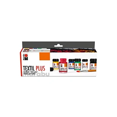 AMAZING - High quality, water-based paint that works on light and dark fabrics VERSATILE - Suitable for printing and stenciling, as well as sunlight, spraying and airbrush techniques WASHABLE - Clean at up to 40°C after fixing PERSONALISE - Perfect for sprucing up those bland materials and old clothes INCLUDES - 6 x Marabu Textil Plus 15ml (Medium Yellow 021, Carmine Red 032, Dark Ultramarine 055, French Green 015, White 070, Black 073), 1 x Marabu Universal Brush (Flat Size. 8), Weight: 0.62 Pounds, Manufacturer: Marabu
