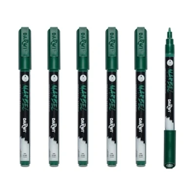Set of 6 MARBEL universal markers with jungle green-coloured acrylic paint The fine 2 mm conical tip is perfect for small-scale creations, ideal for writing, tracing outlines and creating illustrations. JUNGLE GREEN colour. Available in 40 classic colours. Multi-purpose: Available with 6 different nibs, it adapts to all creative needs: writing, drawing, calligraphy, tracing outlines, creating street lettering, filling in flat areas, on small or large formats. Instructions for use: Shake the marker until you hear the ball mixing the paint, remove the cap, pump the tip until ink comes out - close after use and store horizontally - replacement tips for each model Multi-surface: Marbel paint can be applied to paper, wood, metal, fabric, glass, etc. Permanent on most surfaces, it offers a matt, opaque finish, dries quickly and is lightfast.