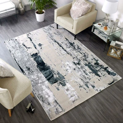 ManoManoGeneral description Aurora rugs offer a lustrous pile with abstract patterns and silver grey color tones that work wonderfully with any interior. The Glacier AU10 features metallic abstract patterns, creating a luxurious focal point in your living room and bedroom areas. Technical specifications Material Composition: 65% Polyester, 35% Polypropylene Pile Thickness: 8 mm Dimensions: 80 x 150 cm (2'6" x 5') Usage Aurora rugs are a great choice for use throughout the home, thanks to their neutral greys and contemporary metallic finished accent yarns that imbue an opulence usually associated with much higher-priced designer brands. This sophisticated rug design combines neutral colors that will fit in many interior schemes, adding a shimmering focal point.