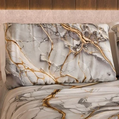 MARBLELIZED Pair of Pillow Cases for Bed 50 x 80 cm, Printed Front/Back, Cases, Elegant Pillowcases with Light Grey Marble Effect, Gift Idea, 100% Made in Italy