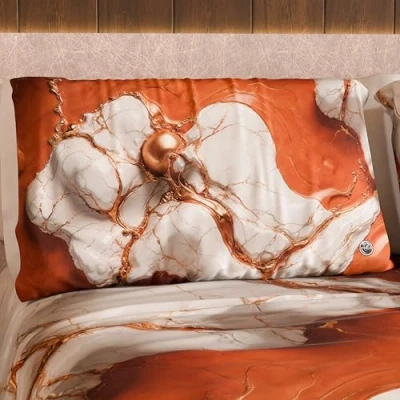 MARBLELIZED Pair of Pillow Cases for Bed 50 x 80 cm, Printed Front/Back, Pillowcases, Elegant Terracotta Marble Effect Gift Idea, 100% Made in Italy