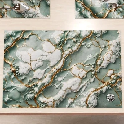 🌟 Innovation and Elegance: PETTI Artigiani Italiani presents the new line of Marblelized Washable American Placemats, a collection of home textiles that revolutionize style with their unique 3D marble effect. A perfect combination of Italian craftsmanship tradition and innovation in design UNIQUE FEATURES - Set of 6: Marblelized American placemats transform any table with their refined marble effect, offering a size of 30 x 45 cm that suits any decor. This set of 6 is ideal for welcoming guests and families, ensuring elegance on any occasion 🛡️ QUALITY & FUNCTION: Made of high quality microfiber, these washable placemats guarantee a print of excellence with vivid colors and defined details. Microfibre also offers the advantage of a quick and easy wash, while maintaining the colour brilliance over time 👉 Infinite Choice: The Marblelized line offers a wide variety of colors, with 24 different shades to choose from, like Salvor inspired by the fresh green of sage. This colour suggests a connection with nature, ideal for relaxing and rejuvenating spaces Italian Pride: A 100% Made in Italy product, marblelized placemats are the result of the excellence of Italian manufacture, synonymous with quality and attention to detail. With PETTI Italian artisans, you bring the elegance and art of the beautiful country directly to your home