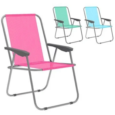 Discover the Marbueno folding beach chair, perfect for camping and outdoor activities. Made of steel and textilene, it is durable, breathable, and easy to transport. Dimensions: 59 x 75 x 51 cm. Ideal for enjoying the sun in the garden or at the beach.