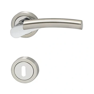 Marc Hesi Fitting Kit Lever Handle with Rosette BB Deadlock Satin Chrome Zamak Nickel Plated Finish, 1124.16 a.062.m