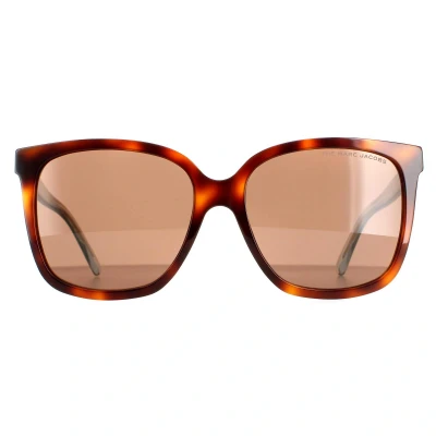 Marc Jacobs Square Womens Havana Brown MARC 582/S Sunglasses are a fashionable square style crafted from lightweight acetate. The Marc Jacobs logo is embedded on the slender temples for brand authenticity.