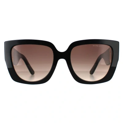 Marc Jacobs Rectangle Womens Black Brown Gradient MARC 687/S Sunglasses are a durable yet luxurious frame that effortlessly integrates into any fashion ensemble. The lenses not only offer superb UV protection but also strike the perfect balance between style and functionality. Adorned with the iconic Marc Jacobs logo discreetly placed on the temples, these sunglasses make a refined statement with understated elegance.