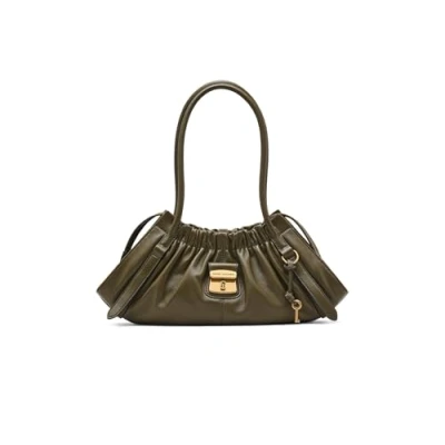 Soft nappa leather with scrunch detail Double zip top + handle + adjustable and removable shoulder strap Organized interior + dust bag included