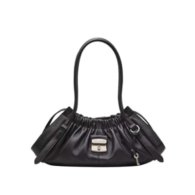 Soft nappa leather with scrunch detail Double zip top + handle + adjustable and removable shoulder strap Organized interior + dust bag included