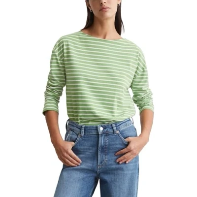 Marc OߴPolo Denim Women's Striped Long Sleeve Top with Boat Neck, Green (Medium Multi 03), XS