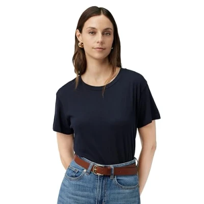 RIBBED ROUND NECK: This T-shirt blends a simple design with a modern laidback cut. The ribbed round neckline and the short sleeves give the top a timeless feel. LOOSE FIT: The casual, relaxed cut ensures an excellent fit. This loose fit top comes in a comfortable wide cut that allows you to move freely. ORGANIC COTTON: Showcasing soft comfort and a sustainable fabric, this top is made from 100 percent certified organic cotton. Machine washable at 30 °C. EASY TO STYLE: Paired with jeans and a classic trench or a skirt and boots, this basic top is a true style staple. It's perfect for casual chic looks or elegant outfits. MARC OߴPOLO: The international brand with Scandinavian roots epitomises premium fashion that blends individuality and authenticity. Natural fabrics and timeless designs allow you to embody your own personal style – the freedom to be yourself.