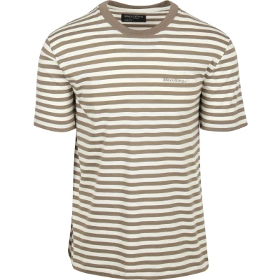 Suitable ShopMarc O'Polo T-shirt Stripes Kaki Marc O'Polo T-shirt Stripes Kaki in the color Green and Khaki with a fit Regular-Fit is made from Organic Cotton with a Plain and Striped design and Short sleeves.